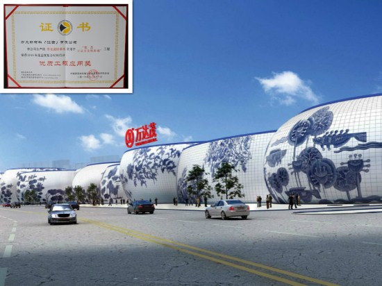 AG旗舰厅青花瓷铝单板应用于南昌万达文化旅游城,荣获2016年度金属复合质料行业“优质工程应用奖”