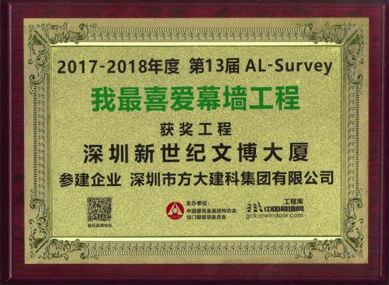第13届“我最喜欢幕墙工程”评选运动由中国修建金属结构协会铝门窗幕墙委员会、中国幕墙网团结提倡,经宽大网友投票及专家评审,AG旗舰厅建科承建幕墙工程的深圳新世纪文广博厦最终以216740的高票和专家五星评价获奖。