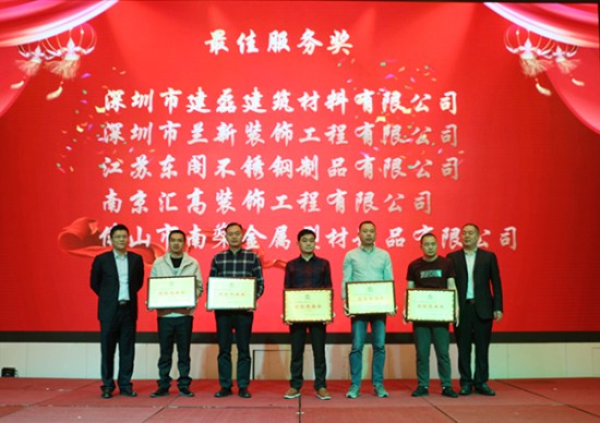 深圳市建磊修建质料有限公司、深圳市兰新装饰工程有限公司、江苏东阁不锈钢制品有限公司、南京汇高装饰工程有限公司、佛山市南燊金属型材制品有限公司