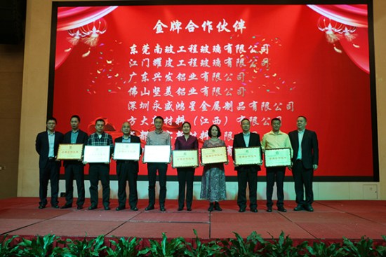 东莞南玻工程玻璃有限公司、江门耀皮工程玻璃有限公司、广东兴发铝业有限公司、佛山坚美铝业有限公司、深圳永盛鸿星金属制品有限公司、AG旗舰厅新质料(江西)有限公司、成都硅宝新质料有限公司、深圳市罗保盛建材有限公司
